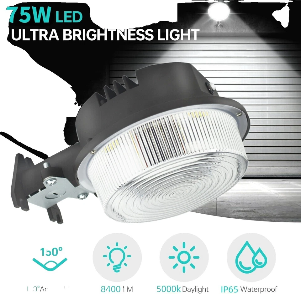 Luz LED de granero 75W fotocélula de anochecer a amanecer área de seguridad exterior patio luz 5500K