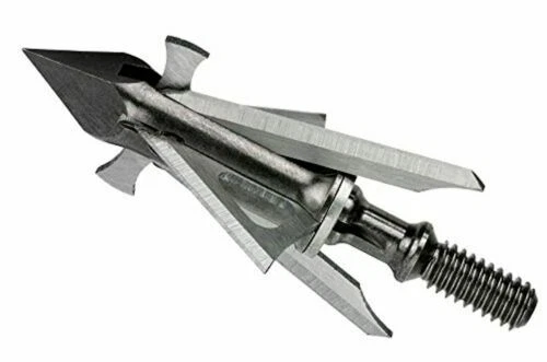 Paquete de 3 ballestas Muzzy Trocar cabezas anchas, 3 hojas de hélice de virola de acero, 100 granos